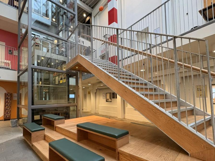 Efter en periode med byggerod og afspærringer står Bispens flotte trappe klar til at byde dig velkommen – start dit besøg på Bispen ved trappen der binder hele kulturhuset sammen.